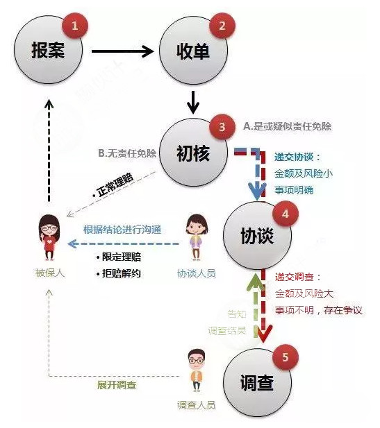 保險公司理賠處理流程,大致分為五個(gè)環(huán)節